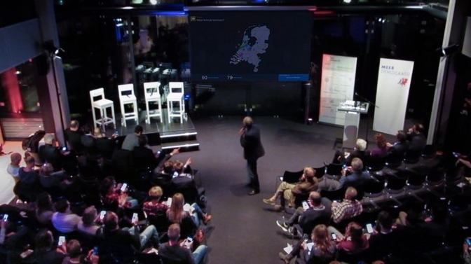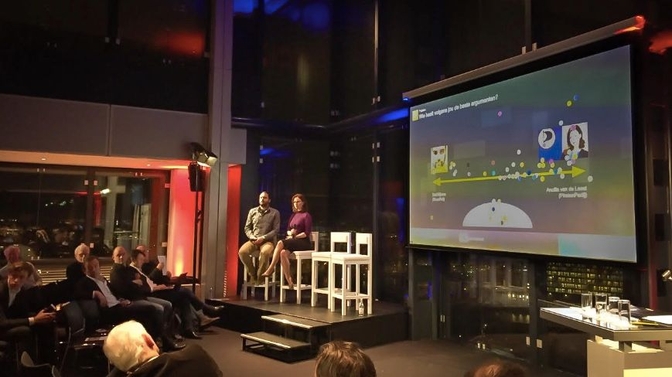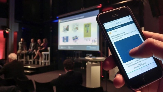 All in all it proved to be quite a successful evening, with the application being able to capture the viewpoints of the ninety people in the room, and audience involvement clearly providing additional focus for the discussion on stage. A very nice example of how a hundred-odd smartphones, instead of being a distraction, can help to create a more focused discussion. Click here to see a pdf with more impressions of the evening.